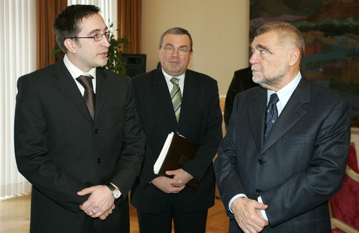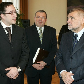 Član uprave i glavni urednik Boris Trupčević s Borislavom Vučkovićem i predsjednikom Mesićem